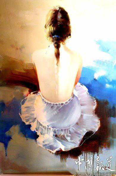 任鉴易所作的《映日荷花别样红》,与其说是油画,不如说是用油彩为颜料画的中国画。其荷花用的是以红破白,荷叶用的是皴加留白的手法,翠鸟、荷茎用的是既有外勾又有没骨的画法。西方油画家们从再现视觉的真实,到把自己的情绪、意愿融入画的过程,与中国画的形神兼备大可称得上异曲同工之妙。