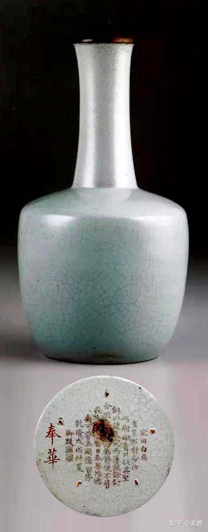 图4:台北故宫博物院藏汝窑直颈瓶底部乾隆御题诗