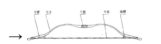 原始的弓箭由单跟的木材或者竹材制作成弓身,再装上植物纤维或者动物的筋皮充为弓弦。完备的弓箭主要由干、角、筋、胶、丝、漆制作而成,《考工记.弓人为弓》记载: