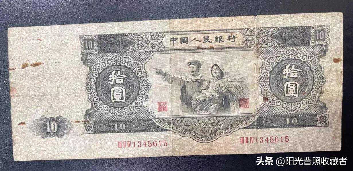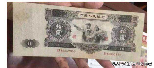 虽然发行较早,但因为某种原因直到1957年才上市流通。1960年与苏关系恶化后,为防止国家的经济利益受损失,“大黑十”于1964年停止流通,前后使用了不到7年。下图为“大黑十”原票,号码好,价格13.5万元。