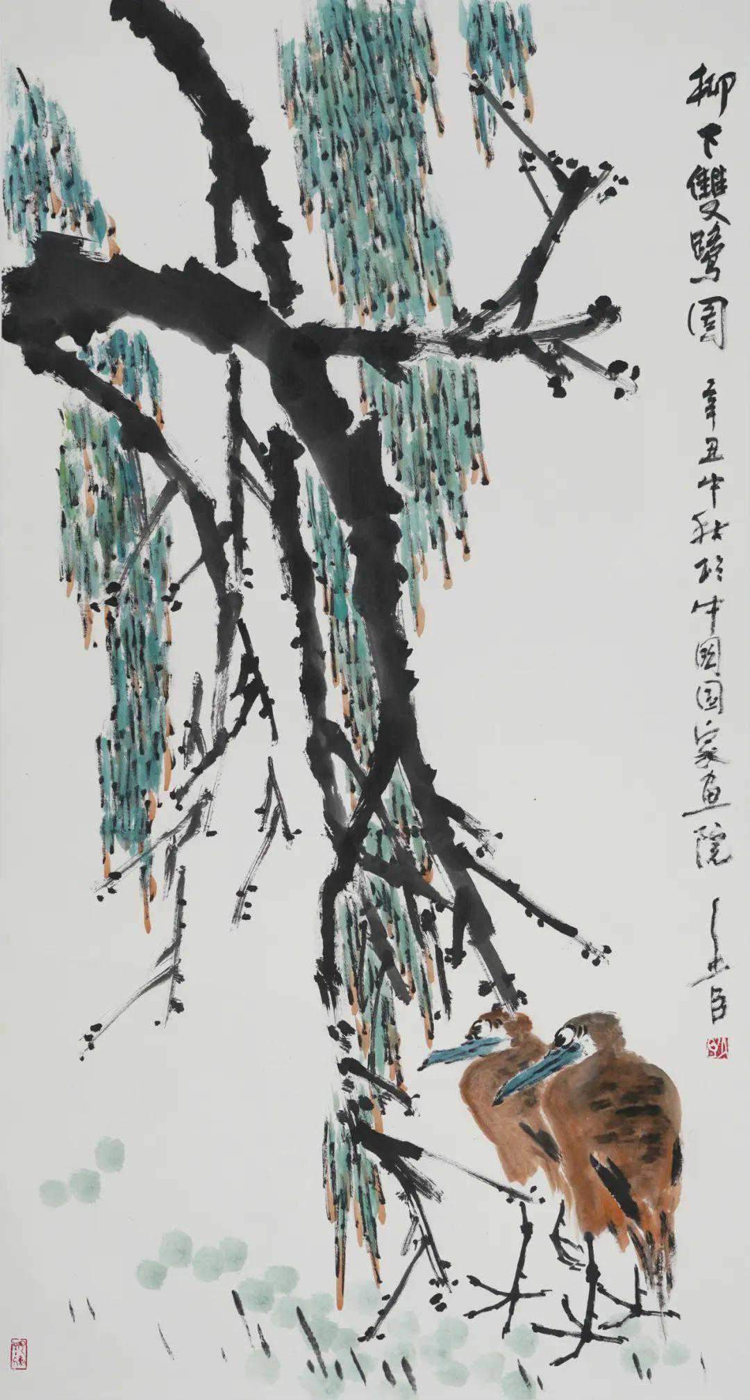 柳下双鹭图180×97cm2021年