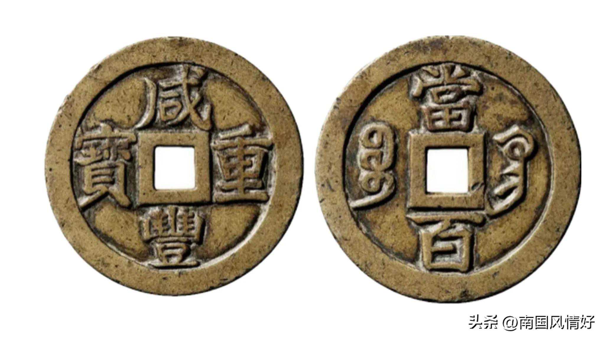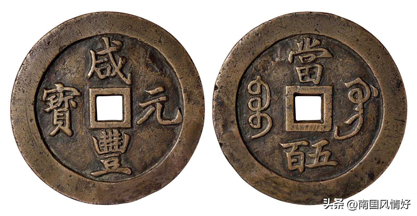 第六名,咸丰元宝宝巩当五百,直径63.6毫米,厚度3.5毫米,拍卖成交价632500元。