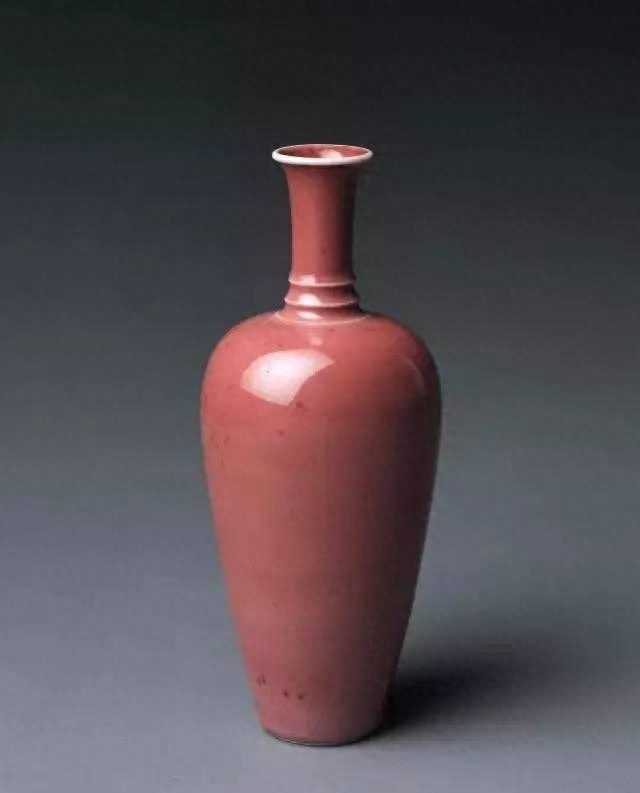 【柳叶瓶】器形纤细似柳叶,故有“柳叶瓶”之称,又因隽巧秀美宛如亭亭玉立之佳人,又称之为“美人肩”,为康熙豇豆红釉名器。外壁所施豇豆红釉,厚润莹亮,色调淡雅宜人,宛若桃花,娇嫩之美不可言喻。器底挖足甚深,施白釉,足外墙呈现一圈较宽的无釉涩胎,这是柳叶瓶显著的工艺特色之一。