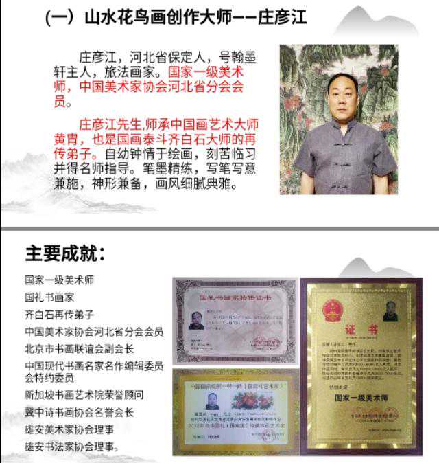 为响应中共中央办公厅、国务院办公厅印发了《关于实施中华优秀传统文化传承发展工程的意见》,意见指出,加强对书法绘画等的扶持,实施网络文艺创作传播计划,传承发展中华优秀传统文化,特别邀请师承黄冑老师(齐白石弟子)大弟子“庄彦江”