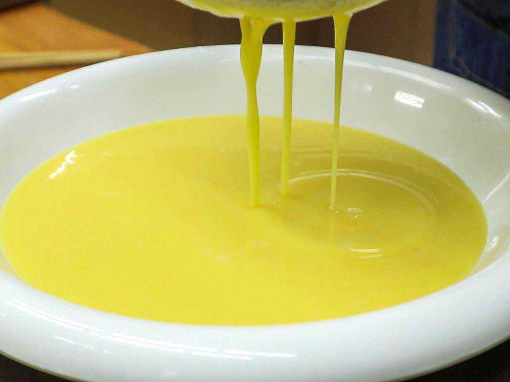 2、趁着这个时间我们准备馅料,碗中打入几个鸡蛋搅拌打散成蛋液。锅内烧油把蛋液倒进去,用筷子不停搅拌,将炒熟的鸡蛋碎盛出备用。