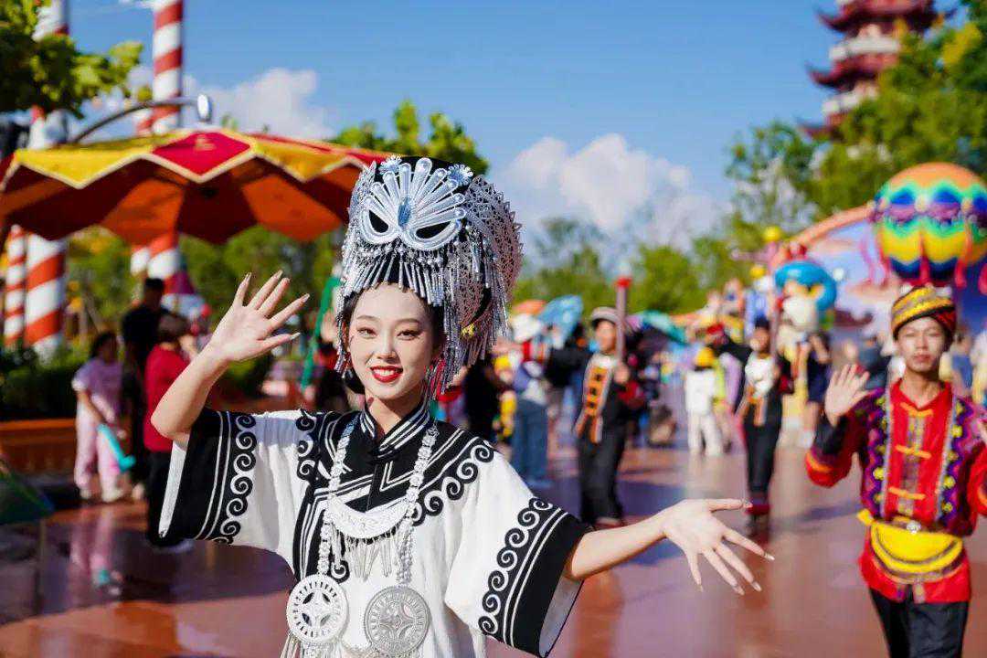 进入乐园,最先看到的便是清韵小镇,道路两旁明清风格的建筑鳞次栉比,让游客们仿佛一秒穿越到古代。走过小镇,穿过城楼,便来到节庆广场,各种特色建筑呈现在眼前,这里还会不定时举办各种节日庆典与民俗表演,如果有机会遇见,千万别错过和演员们合影留念的机会~