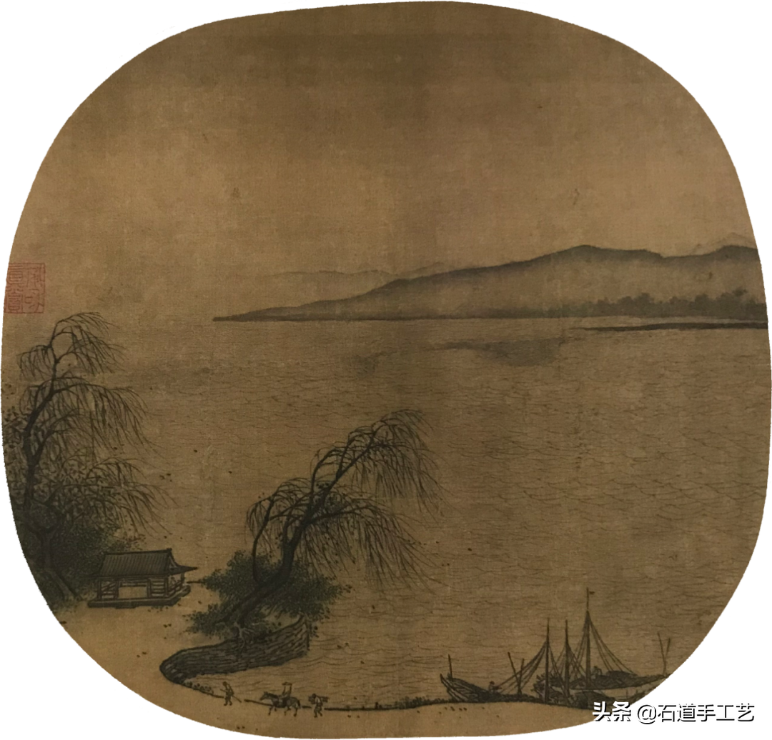 马远,南宋光宗、宁宗朝画院画家。这幅自然人间浑然一体,堂内侍宴,阶下执灯起舞,屋外丛梅、远山呈现于苍茫夜幕之中。中国水墨画写实在此得到深化,表现自然诗情画意。是南宋时代的代表。