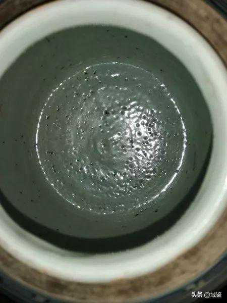 而且这种罐子可以看到很多缩釉点和棕眼,特别是在罐子的内胎处,而且它整个罐子的侧壁会有很多鸡爪冲这样的冲纹在里面。