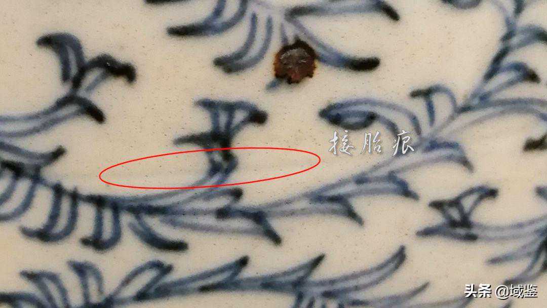 第二个特点是它缠枝花卉的画法,像这样的缠枝连纹清三代就开始有而且它整个花卉画的柔美且细腻,而到了嘉道时期它整个缠枝连纹,画的非常的生硬、死板,它整个莲子的叶片画成了钩子状,这样的叶片我们也叫钩子莲。