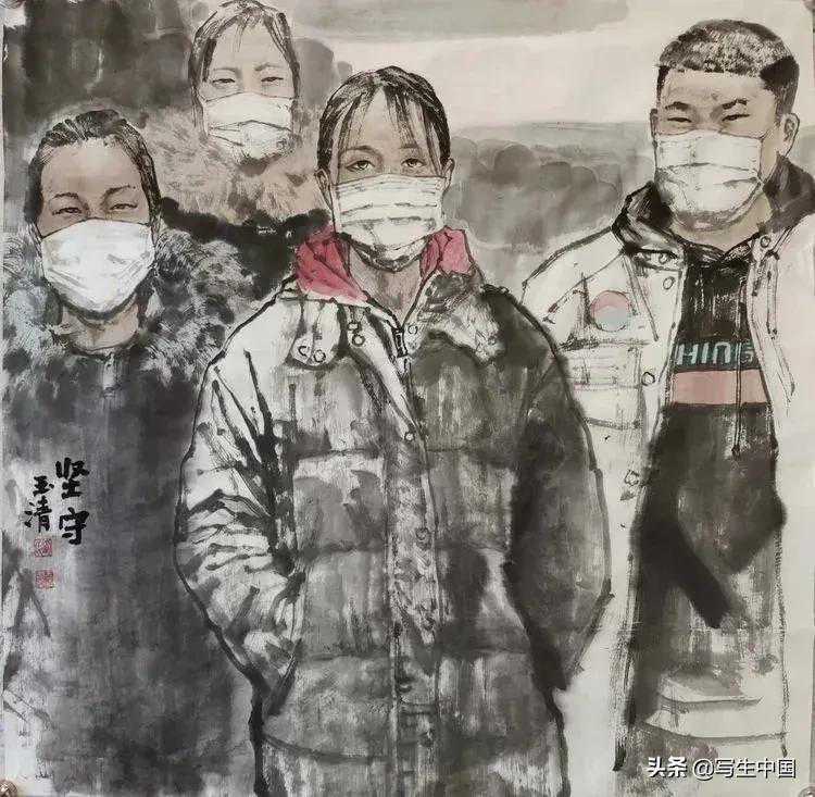 《拿画笔的抗疫战士》中国画蒋洪亮