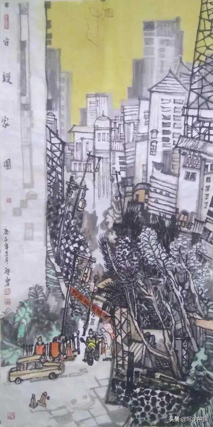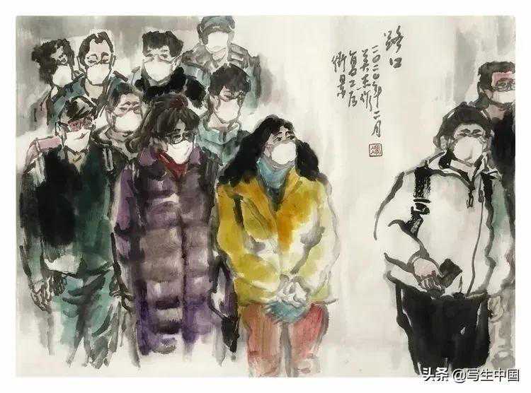 《全民动员,打胜疫情防控人民战争》中国画苏振福