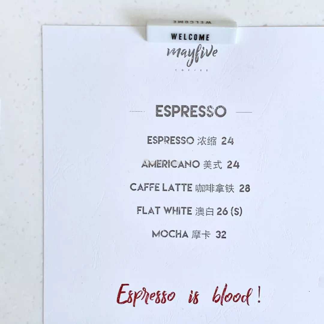 店面不是很大,但是整体的布置和很多摆设的设计,就是属于Mayfive自己的风格。菜单上那句“EspressoisBlood”的设计,也是给了小怪一击惊喜!