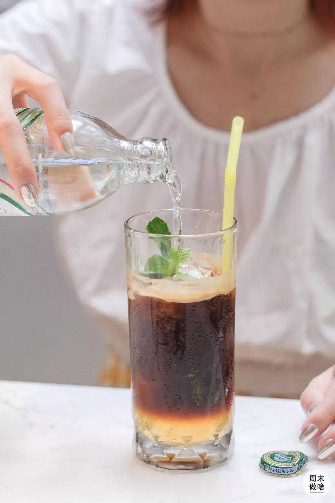 梅咖醋乐的分层很好看,口感有着浓郁的梅子味,不过喝之前一定要搅拌,可乐、咖啡和梅子的味道才可以一次尝到!