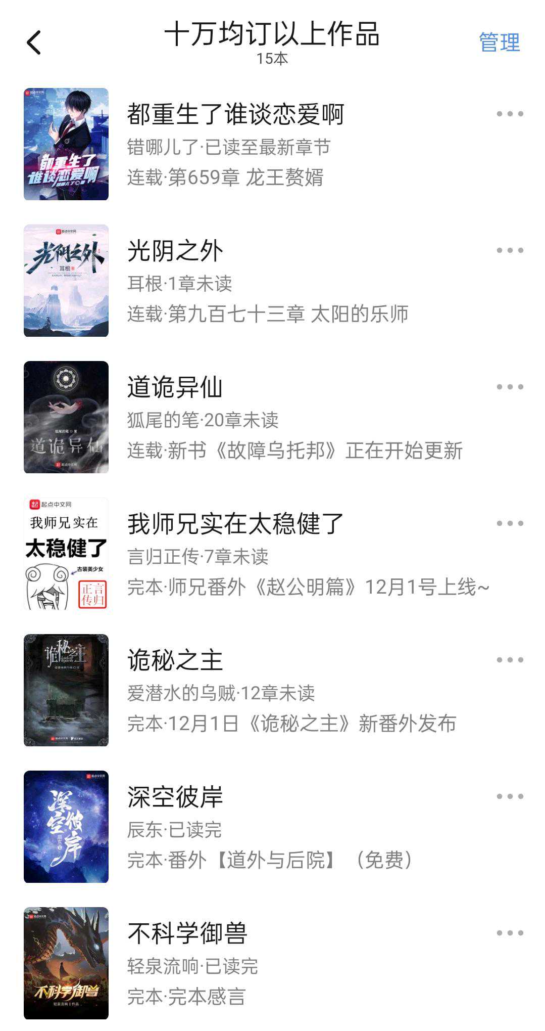 就是不知道这个十万均订是今年还是去年突破的,主要还是今年一月底,阅文作家助手发布2023年年终总结的时候,提到去年起点十万均订作品同比增长75%,大家只能确定五本,剩下的一本到底是哪本老书,大家也不清楚,起点也没有官宣过具体名单。