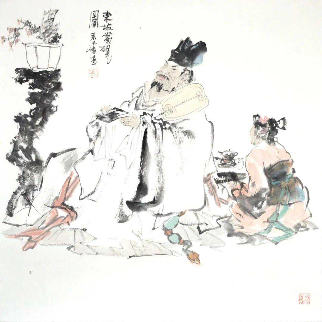 如赏《独钓老者》《羲之观鹅》《松下醉酒》,这些古代人物画中高蹈尘外的逸士,让人领会到释然自由的境界;品《丽日游春》《长安佳人》《仕女图》,柔条纷冉的苗条仕女,令人惊叹丽人的妩媚风韵之美;观《春郊赏石》《竹园清音》,你甚至想与那些隐于林泉、匿于山川的绝代名士或得道文人共席而坐,同游天涯。