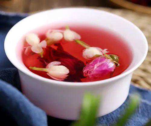 做法:将洛神花与茉莉花放进茶锅里煮上15分钟即可,如果没有条件,直接用沸水冲泡也是可以的。如果想要口味更甜,可放上几块冰糖。