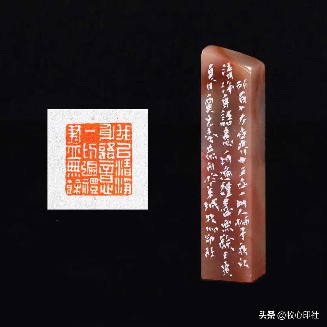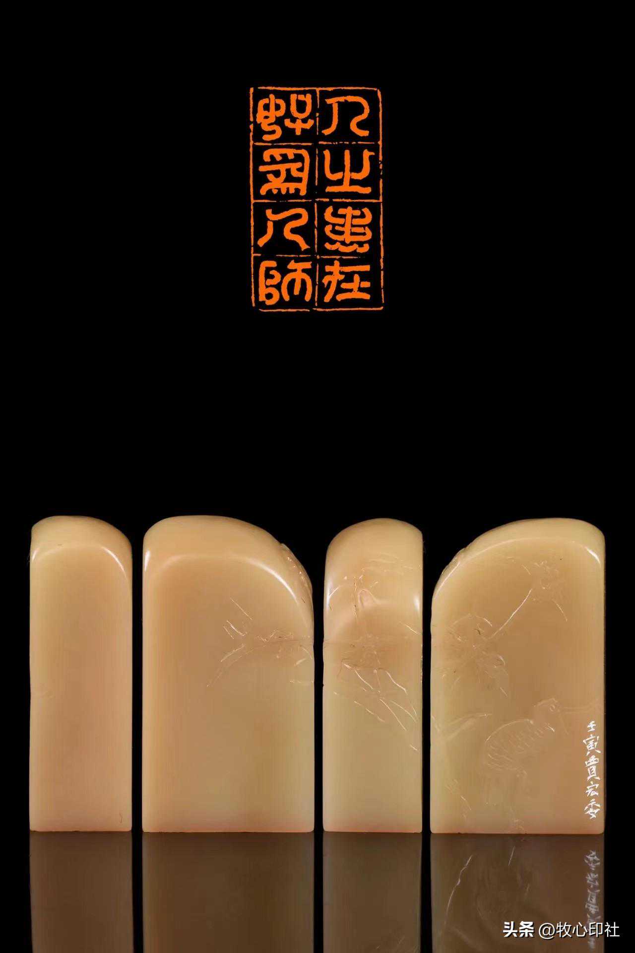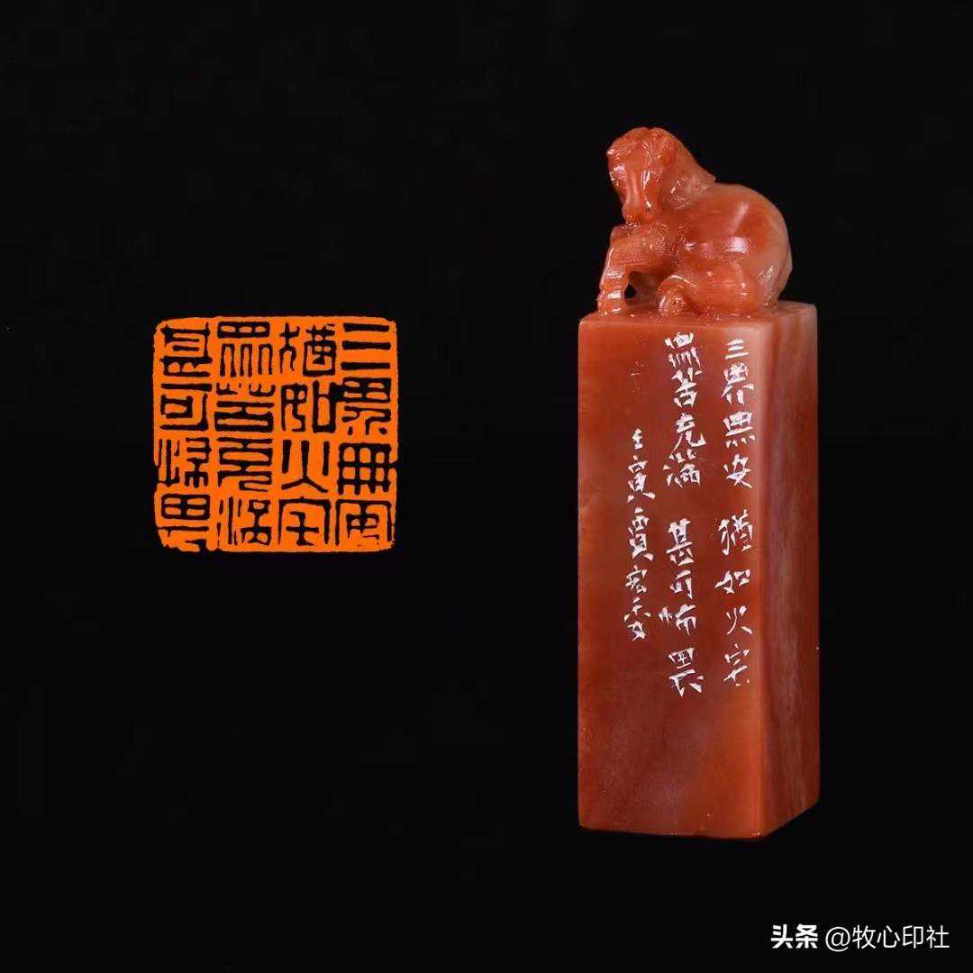 喜爱旧物所带来的好处便是,旧物易损坏,所以总得上手修修补补,此乃文玩乐事,涉猎的广泛带来出手的不凡,奇才异能的动手能力更是拔萃之选。有了以上说明,我想在篆刻一途,常见石材的篆刻无需多言,水平自是同类拔萃,他还擅长凿刻金、银、铜,琢磨玉、翡翠、玛瑙、琥珀、竹木牙角等异材印章,每种材料都有丰富的经验和见解,这是经历使然,也是知识储备的必然。