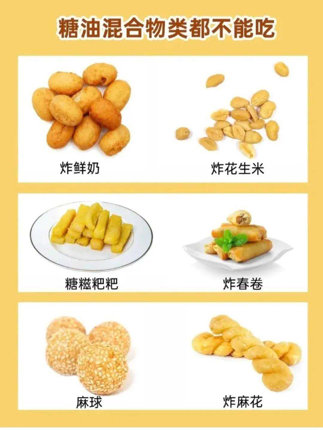 不可以吃的:油条,烙饼,方便面,炒饼,炒面,炒饭等