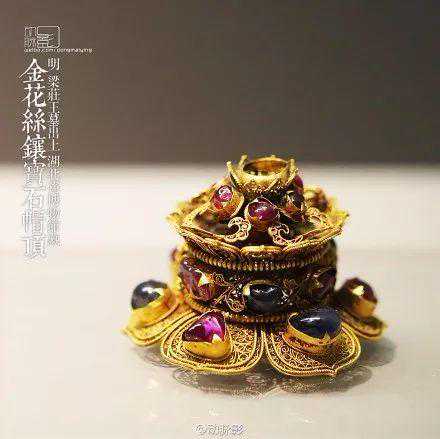 金累丝镶宝石帽顶,高3.4厘米,底径5厘米