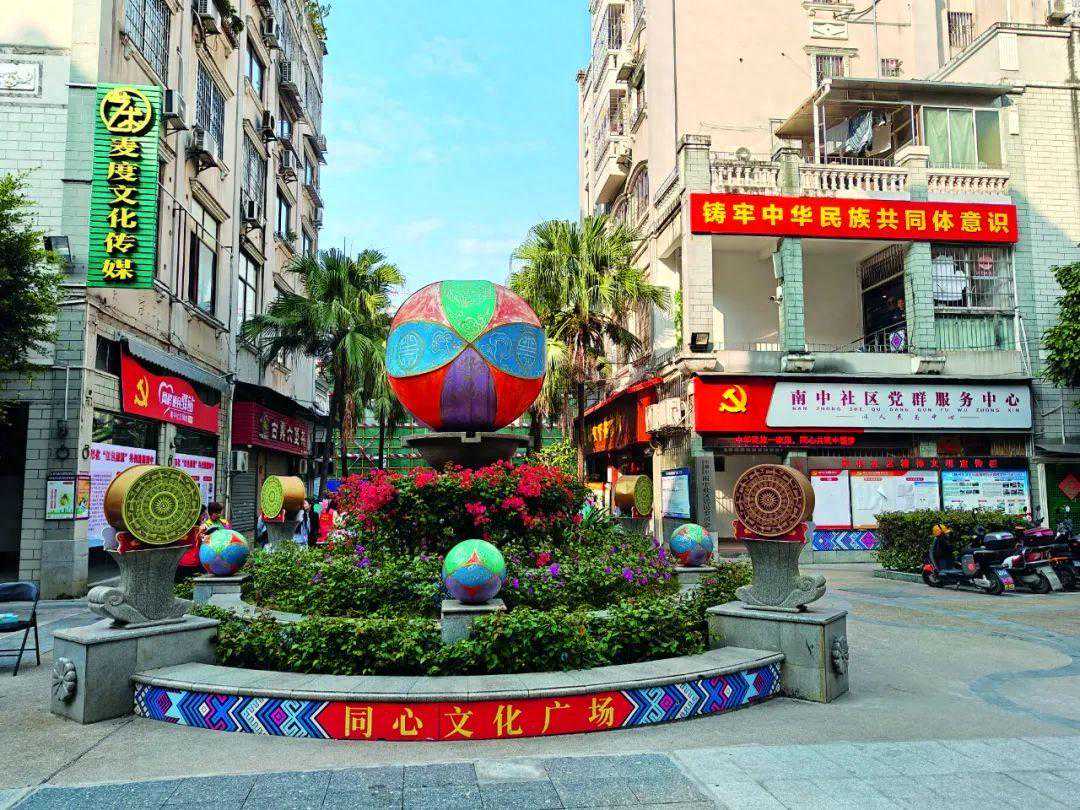 近年来,南中社区以“骑楼大妈”志愿服务队为引领,经常开展帮助困难家庭学生解决学费、解决进城务工子女入学、维护商圈经营正常秩序等服务工作,不断创造更加完善的社会条件,让各族群众共居共学、共建共享、共事共乐,像石榴籽一样紧紧抱在一起。