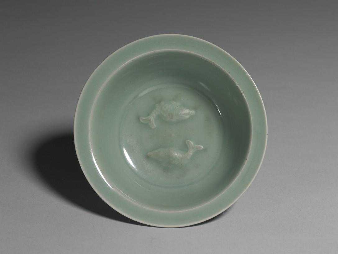 南宋-元龙泉窑青瓷双鱼洗高5.1cm,口径15.6cm,足径7.7cm