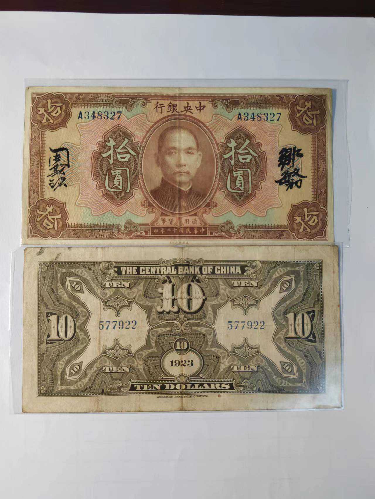 中央银行民国12年美国钞票公司印制的10元面额纸币,从版别上细分,有5种版别。