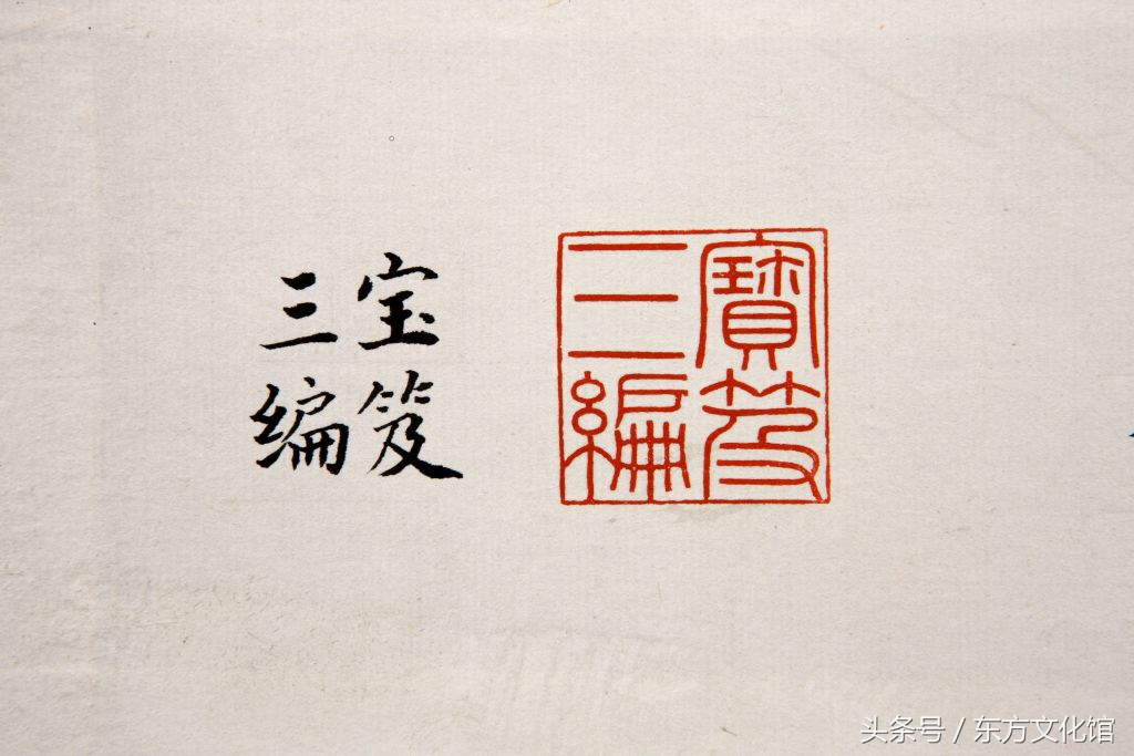“宝笈三编”即《石渠宝笈》三编的简称。此玺是《石渠宝笈》三编著录内府收藏书画作品必钤宝玺。《石渠宝笈》、《秘殿珠林》三编“凡例”规定:“恭遇列圣宸翰、皇上御书则用‘珠林三编’或曰‘宝笈三编’、‘秘殿珠林所藏’或曰‘石渠宝笈所藏’凡二玺。古今臣工书画则用‘嘉庆御览之宝’、‘嘉庆鉴赏’、‘三希堂精鉴玺’、‘宜子孙’,或曰‘秘殿珠林’、或曰‘石渠宝笈’,凡五玺。又加‘珠林三编’或曰‘宝笈三编’一玺,以示别于续编。”此为鉴别清宫书画收藏的标志性宝玺。