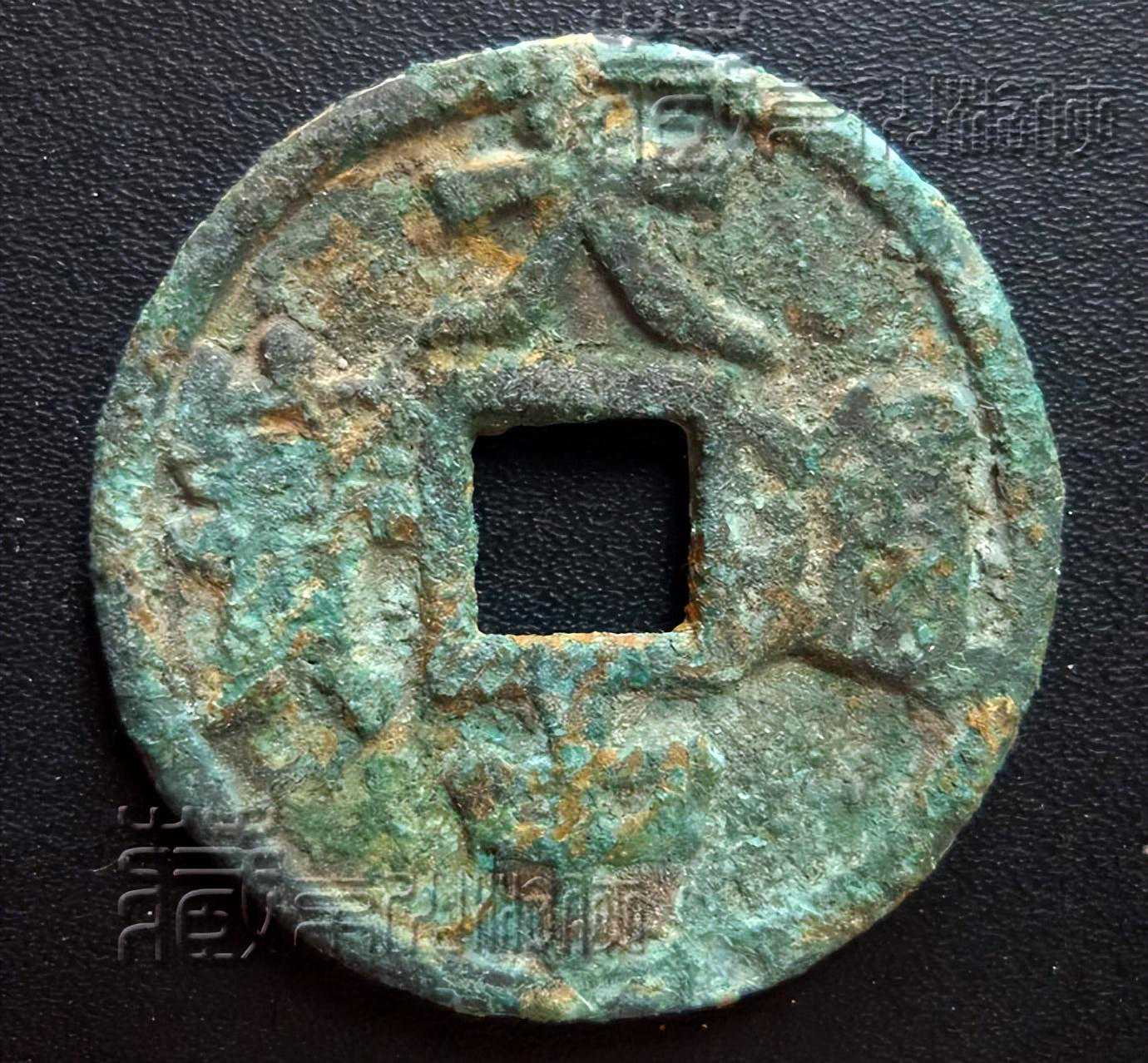 次观铸相。辗转本品,可见其铸制十分规整,直径约为40.54毫米,重约26.33克,铸体较为厚实,折五形制(因大中钱较独特的形制决定,其折五型钱径均在四十毫米左右,故其定折五型)。续可见,其制式为窄缘,穿廓粗细适中(谱载品拓图显示穿廓较细)。铸体显示方圆廓正,平坦地章,穿轮皆为干净。在观其字廓,深竣挺拔,鼓凸自然有度,恰到好处。因其重锈,故笔划因锈蚀而至粘连较重,自然现象。如此,毫无疑问,观铸识体,本品整体铸相规整,穿轮干净,乃太祖官炉所出,盎然本色,其门再开无疑。