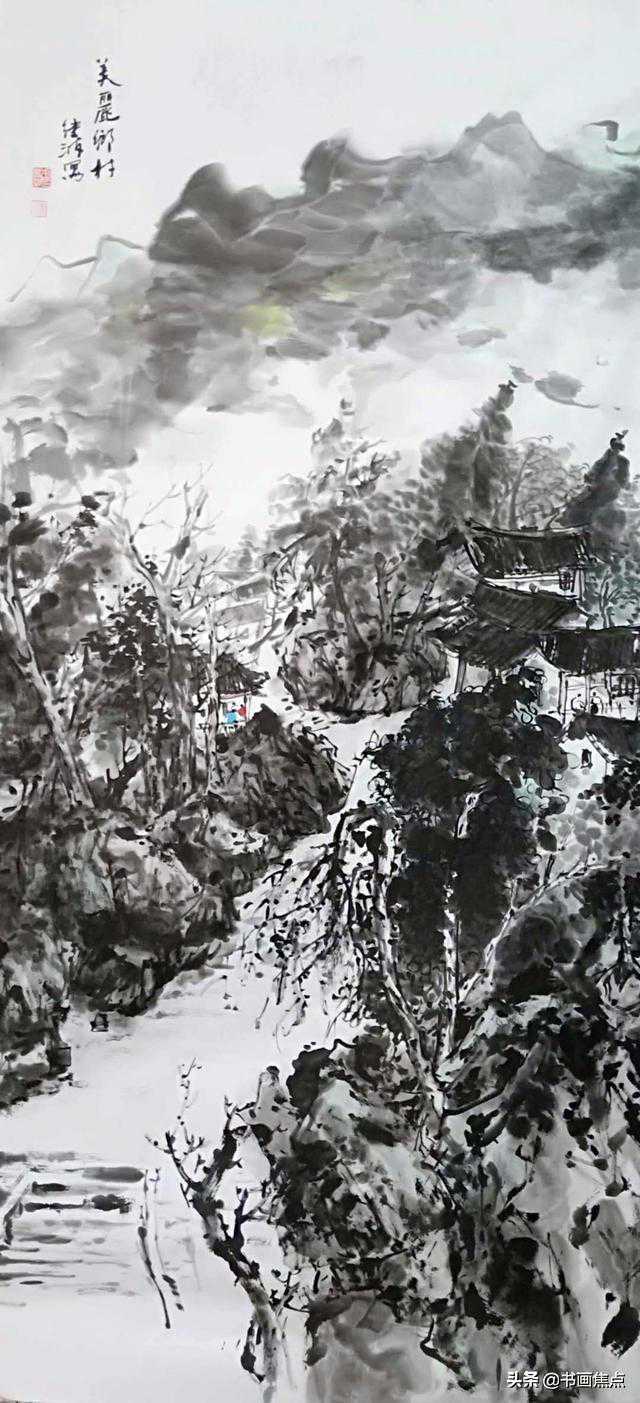 卢继波的写生山水画,有的质朴、清新、构图简洁;有的则笔墨浓重,近似版画的刀痕笔触,但共同的特点,俱为云岭壮乡的山山水水,其中不乏《孟村农人村》《苗岭神曲》《桃树村新貌》等具有时代气息,反映社会主义新农村的优异作品。