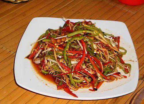 王聪:鬼火绿是云南地区比较有名的菜色。鬼火绿是云南方言,意思是非常的恼火,很生气,象形词,同“火冒三丈”。相传,明清时期,有一位御厨来自云贵高原,在某天正餐时,他给皇帝凉拌了一道菜,这道菜主料就是辣椒配辣椒,皇帝尝过后受不了此道菜的辛辣,火冒三丈,于是下令将此御厨斩杀,其徒弟有感于御厨恩德,便偷偷将此菜做法保留了下来,并且根据菜色和食客的反应,将此菜命名为“鬼火绿”。