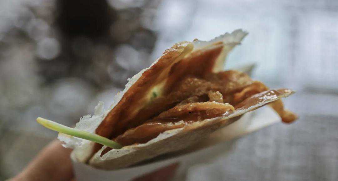 张瑞杰:“包脚布”大家听说过吗?只听这个名字,没有人会把它和食物联系在一起吧?其实,上海的一种名小吃就叫作“包脚布”。和名字相反,上海的“包脚布”非常美味,吃起来又香又软,还非常有嚼劲,外观看上去像煎饼果子,口味还会更丰富一些。