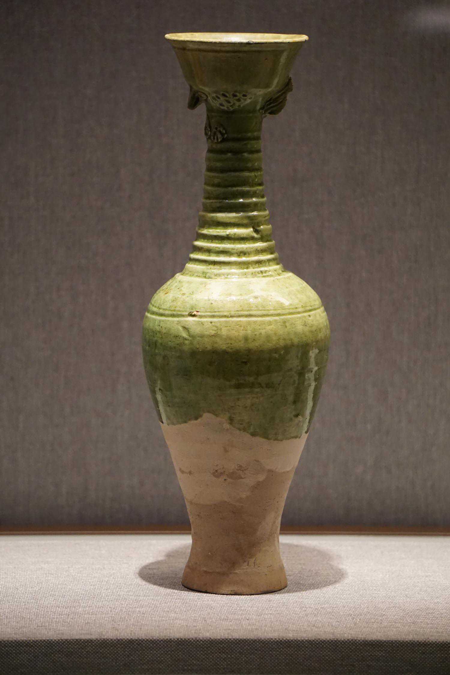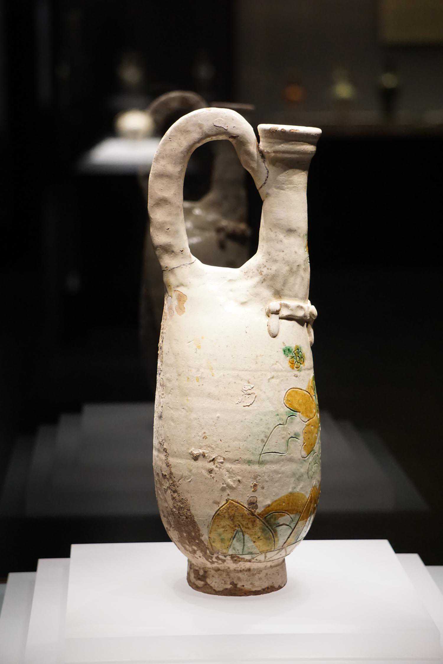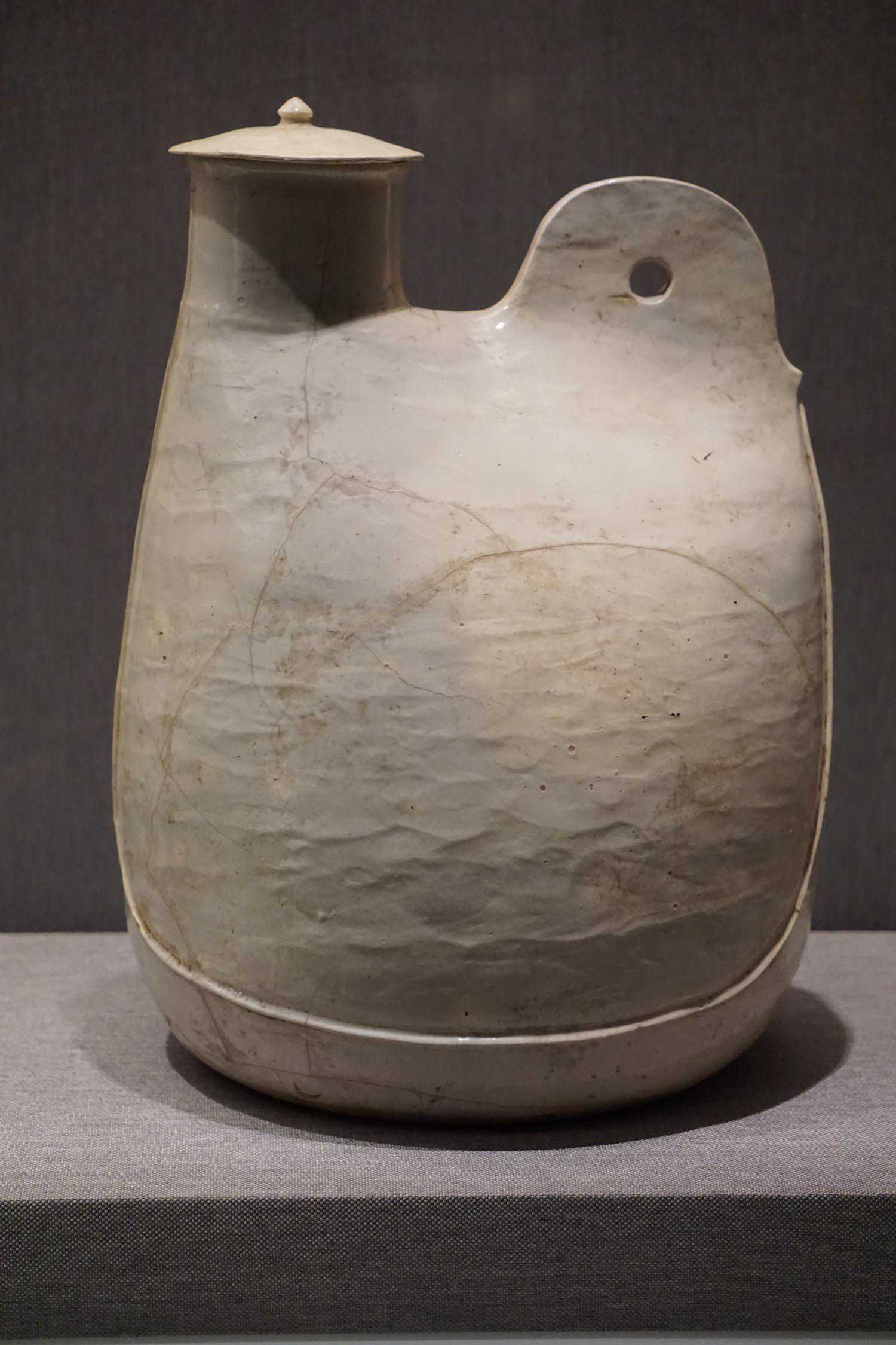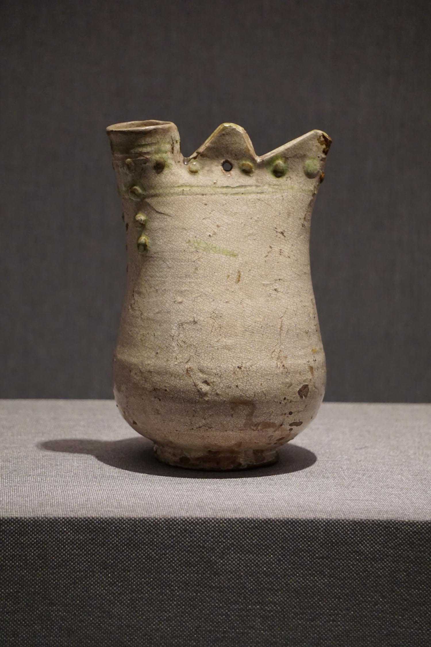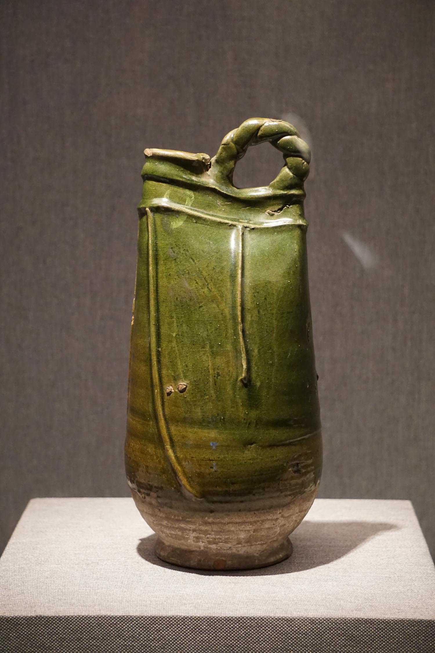 白釉绿彩纽带装饰折梁鸡冠壶辽辽宁喀左大三家子出土