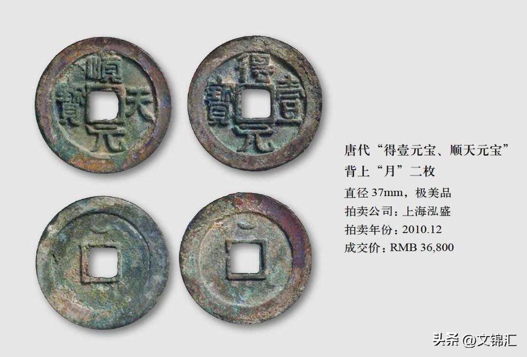 四、唐代得壹元宝、顺天元宝自古以来,人们常说:“顺天易得,得壹难求。”目前,无论是顺天还是得壹钱,都极为珍贵。作为唐代钱币中最为著名的两大名品,它们不仅见证了杨贵妃的香消玉殒,更是唐代由盛转衰的历史见证。