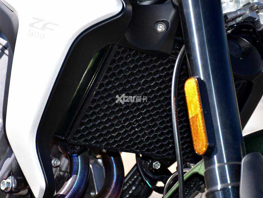 水箱外侧标配了蜂窝防撞护网,防止骑行时碎石飞溅损伤水箱。