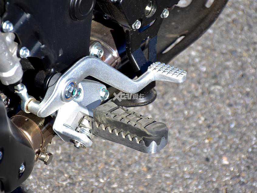 左右脚踏脚垫均可取下,取下后露出的锯齿脚踏能够让驾驶员的车靴摩擦力更强。