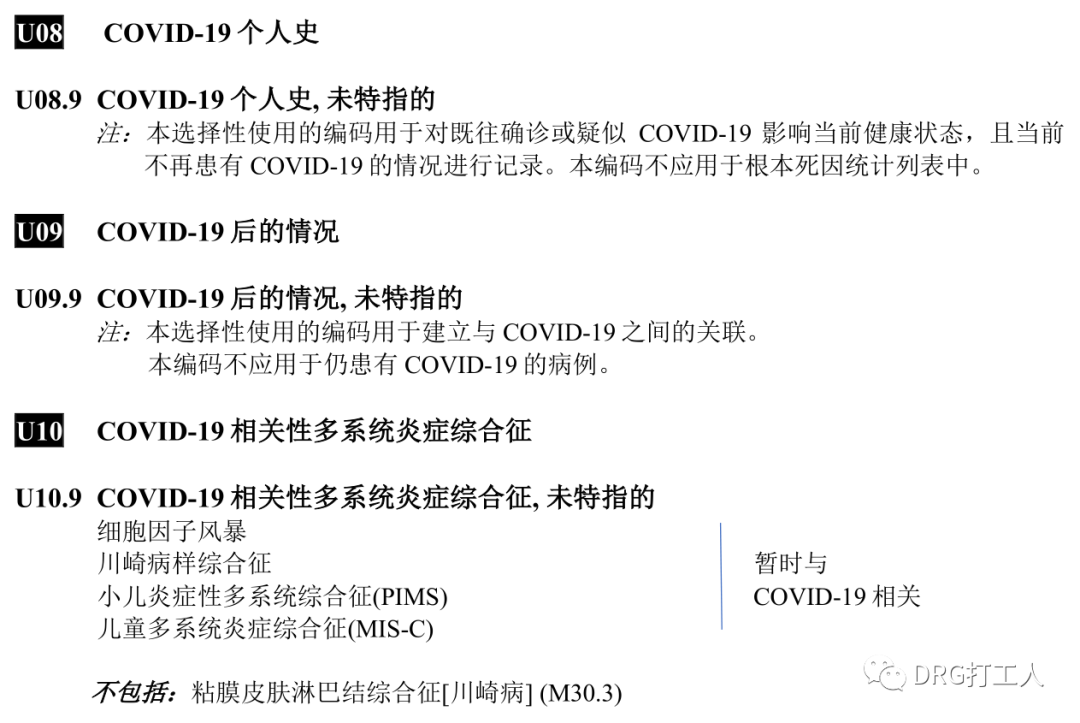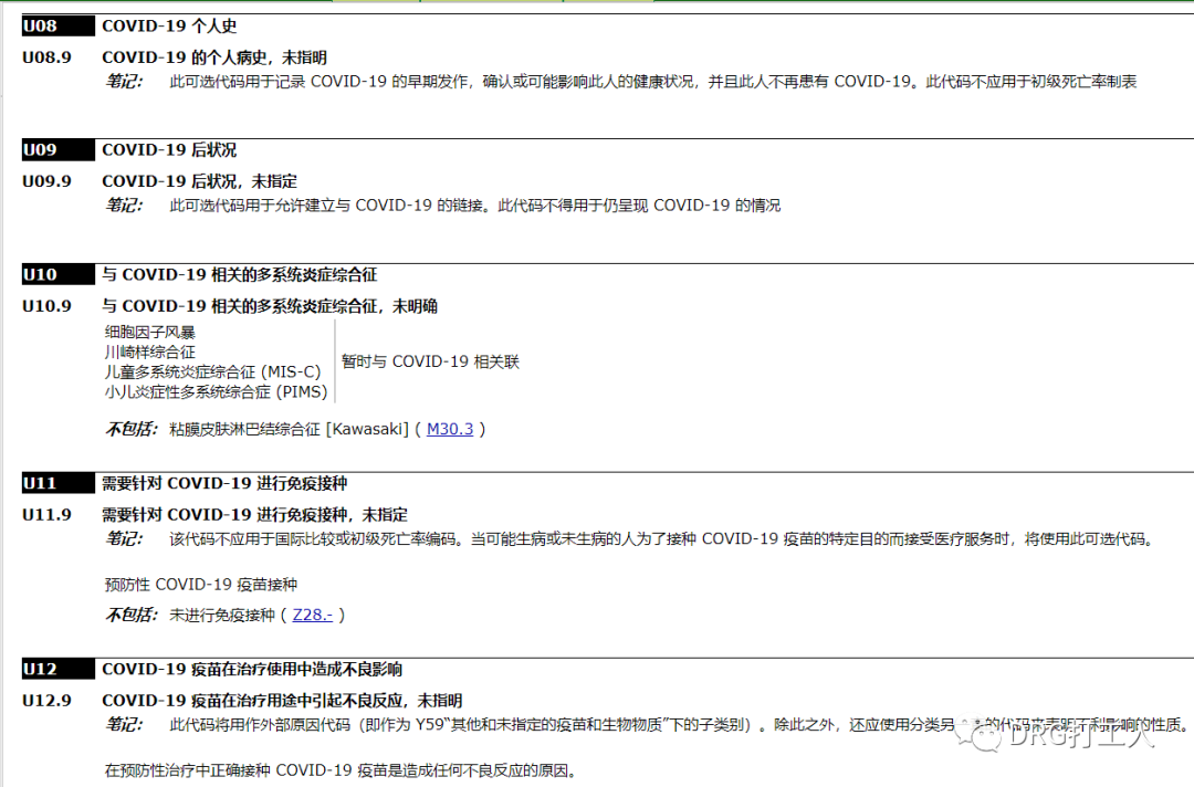 再看U08-U12,具体内涵见截图。其中有一个“不包括”的编码:Z28.-未进行免疫接种,也是可能会用到的编码。