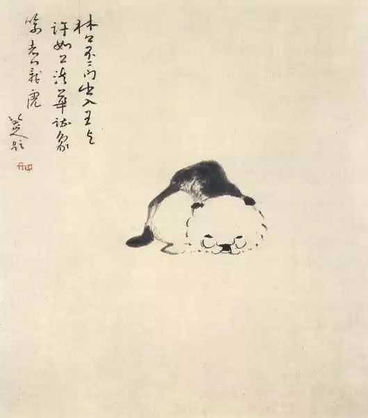 八大花鸟画最突出特点是“少”,用他的话说是“廉”,有时满幅大纸只画一鸟或一石,寥寥数笔,却神情毕具。