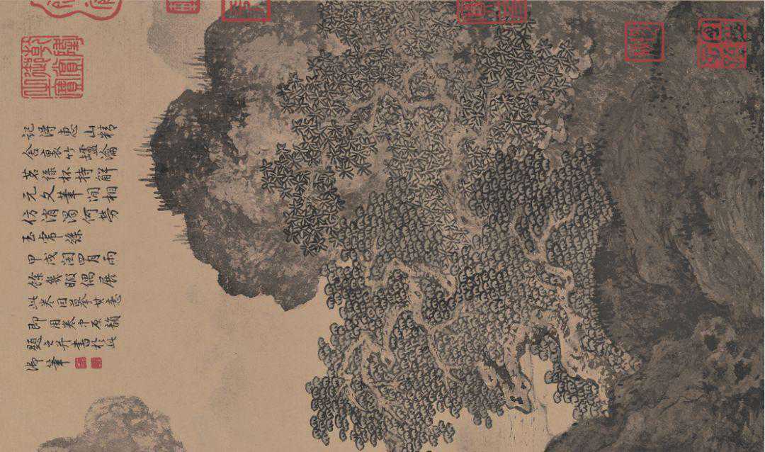 可见周臣是明白人,由于这一致命伤,尽管论笔墨功力,他们之间可以说不分上下,然而,笔墨的灵动性,画面传递的深层内容与气息,唐寅远胜过周臣,相比而言周臣的画就显得板滞多了。