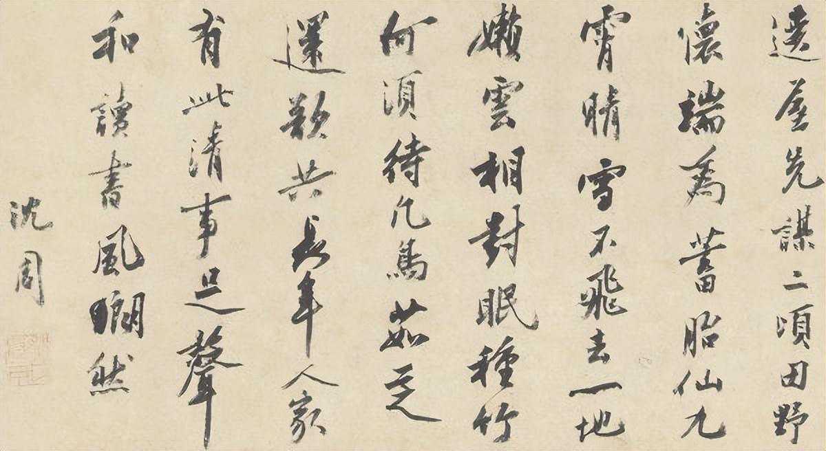 从传世画迹来看,周臣的画上一般都只写一行字号姓名,我们称之为“穷款”。而唐寅画上洋洋洒洒大多都有诗题,这就是典型的中国文人画。