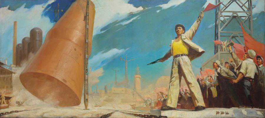 《高歌猛进——9424高炉整体起吊》布面油画1972年