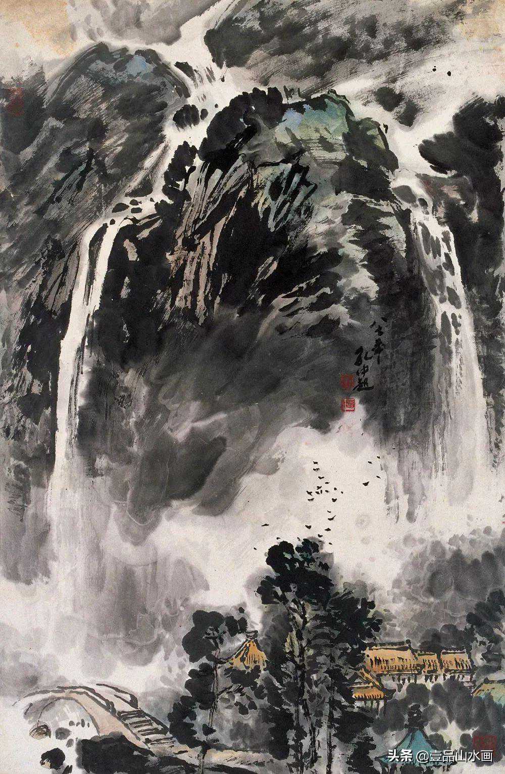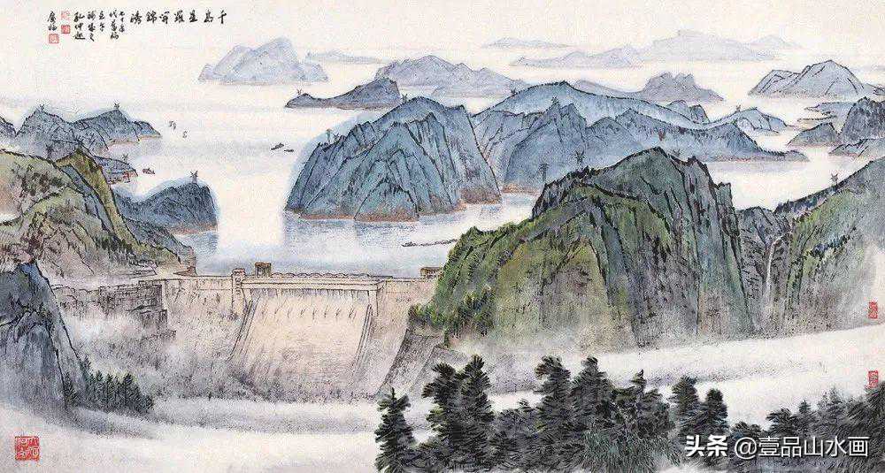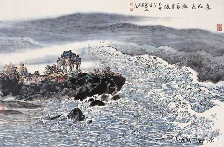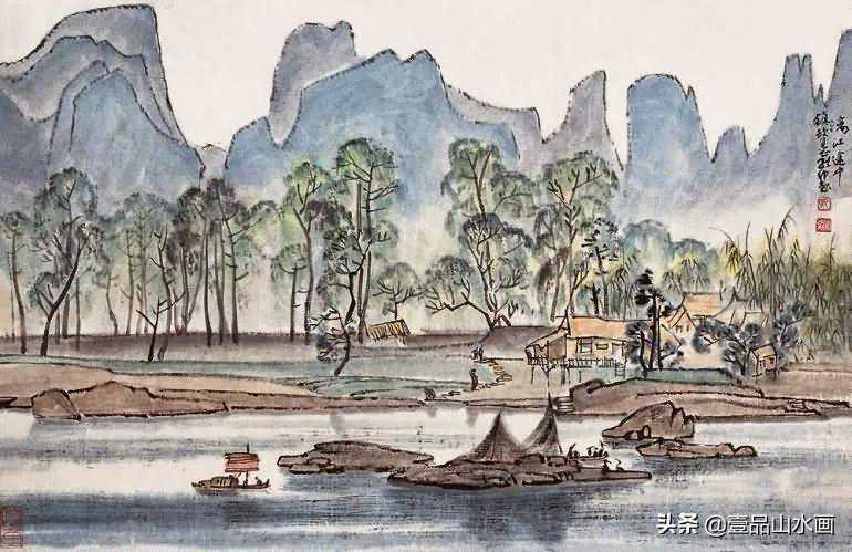 他的山水画风格博大、雄浑而又平和、隽永,自成一格。但他不故作深奥,更不故弄玄虚,他有崇高的社会责任感和使命感,他尊重大众的审美趣味,他努力把自己的艺术追求融化在为大众能理解的艺术语言之中。他的艺术创造是雅俗共赏的,雅俗共赏其实也是他追求和珍惜的一种艺术品格。