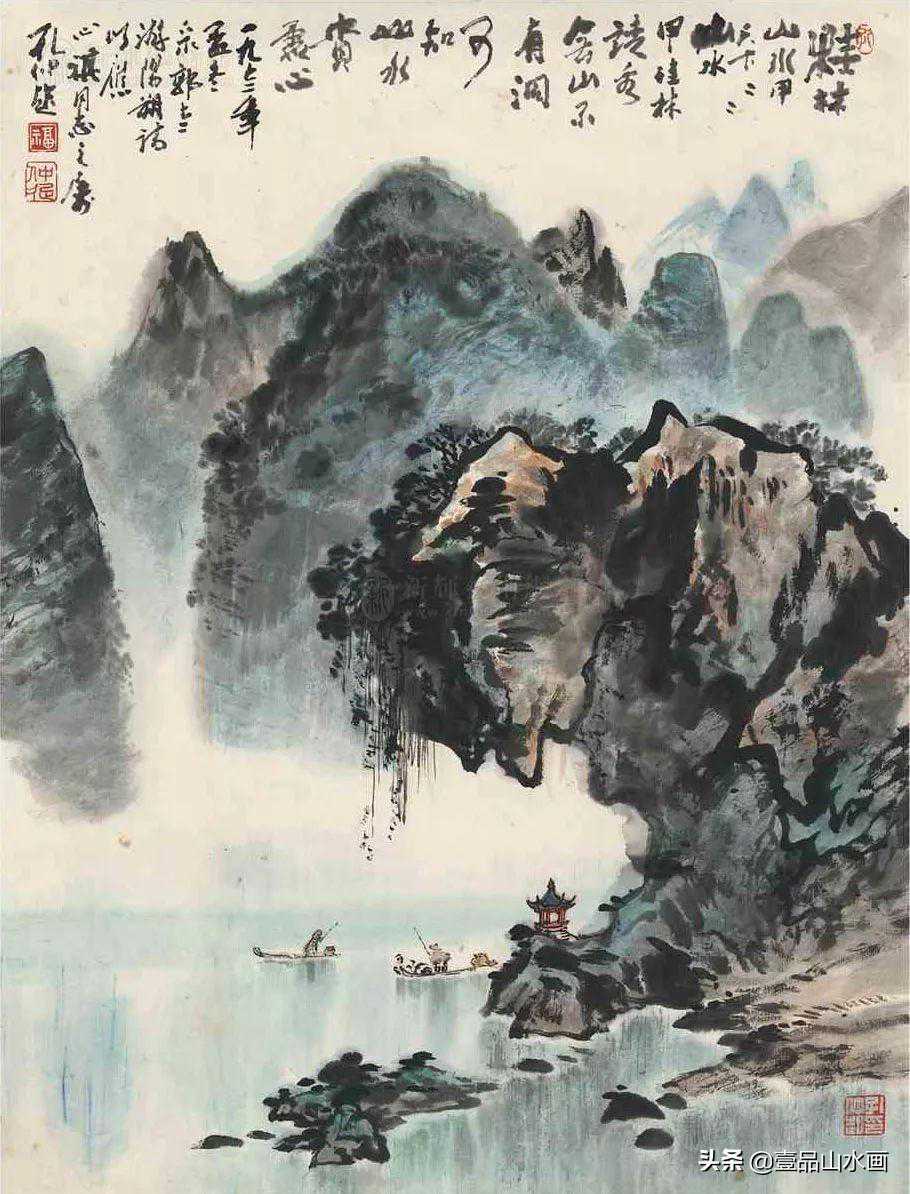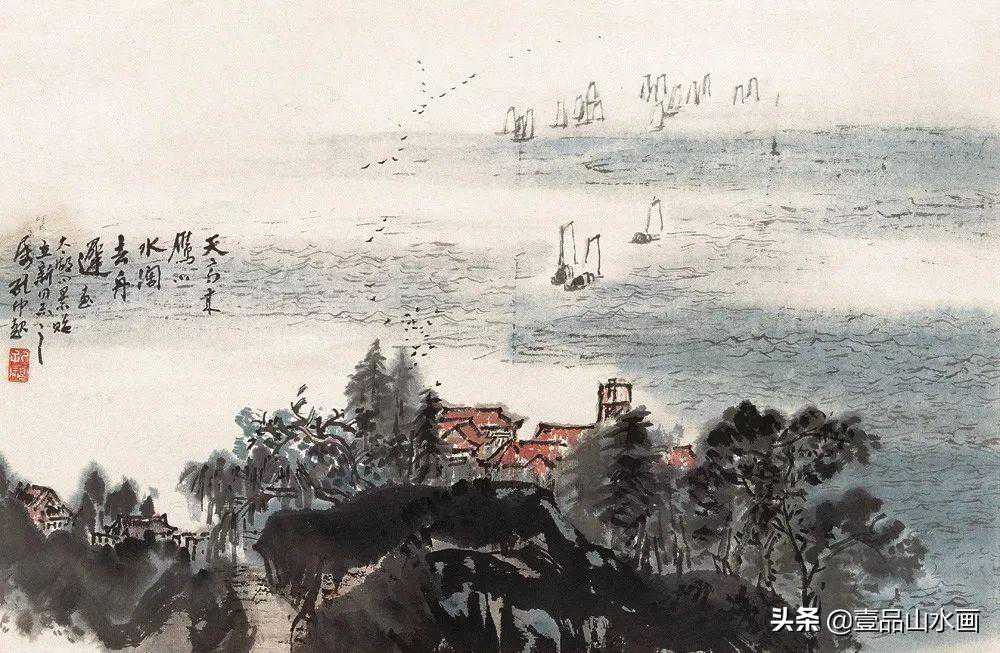 孔仲起的山水画兼有广阔与精致的两种品格。在写景造境中有细致入微的描写,又有宏观的把握。看来,他是一位既有激情又有理性思考的艺术家,且兼有南北两种画风的特点。