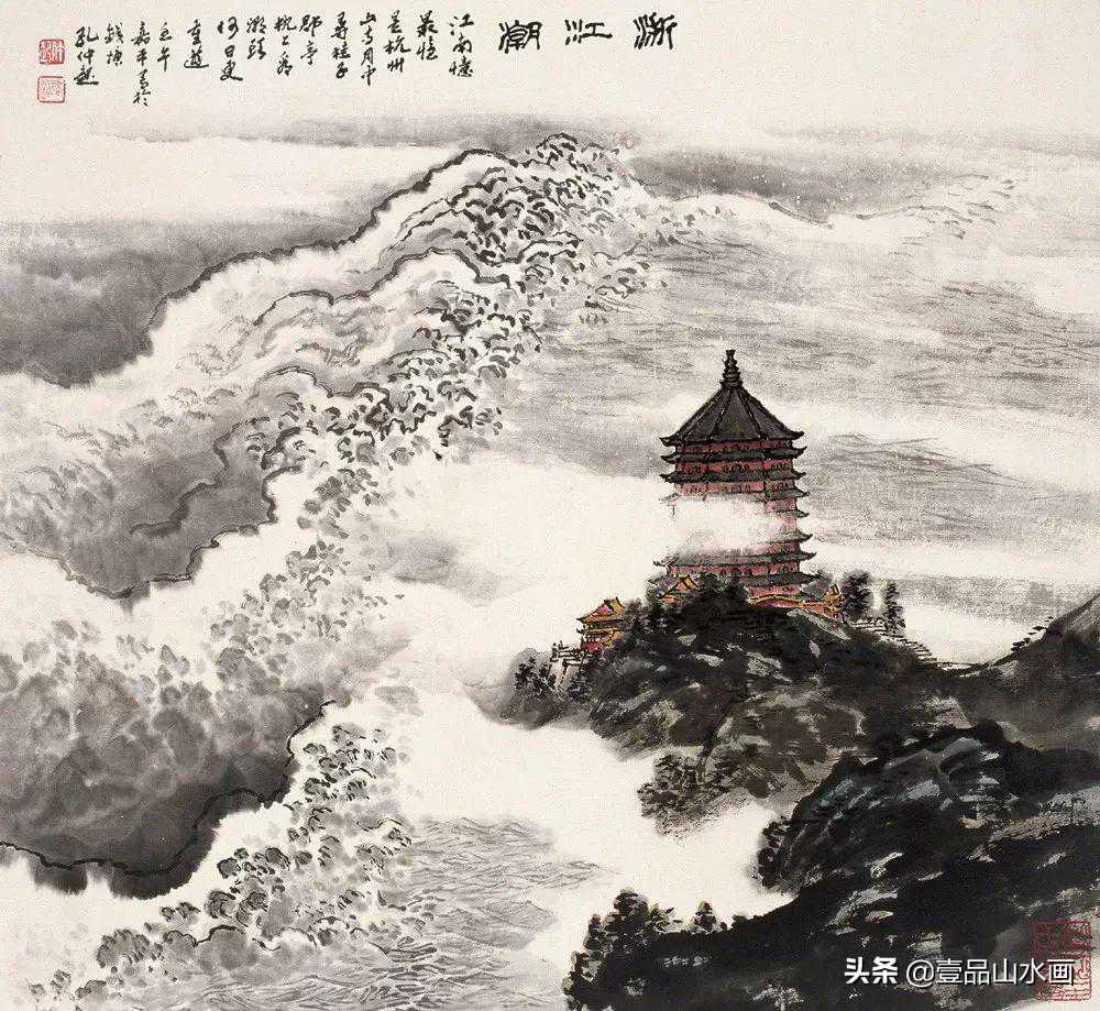 孔仲起爱潮,每年农历八月十八,他都会和夫人钮素芬到江边看大潮。为了能每天观察潮水变化,他甚至把家搬到钱塘江畔,并在画室开了小窗,题曰“钱江一截”,其成名作《浙江潮》就是这么画出来的。