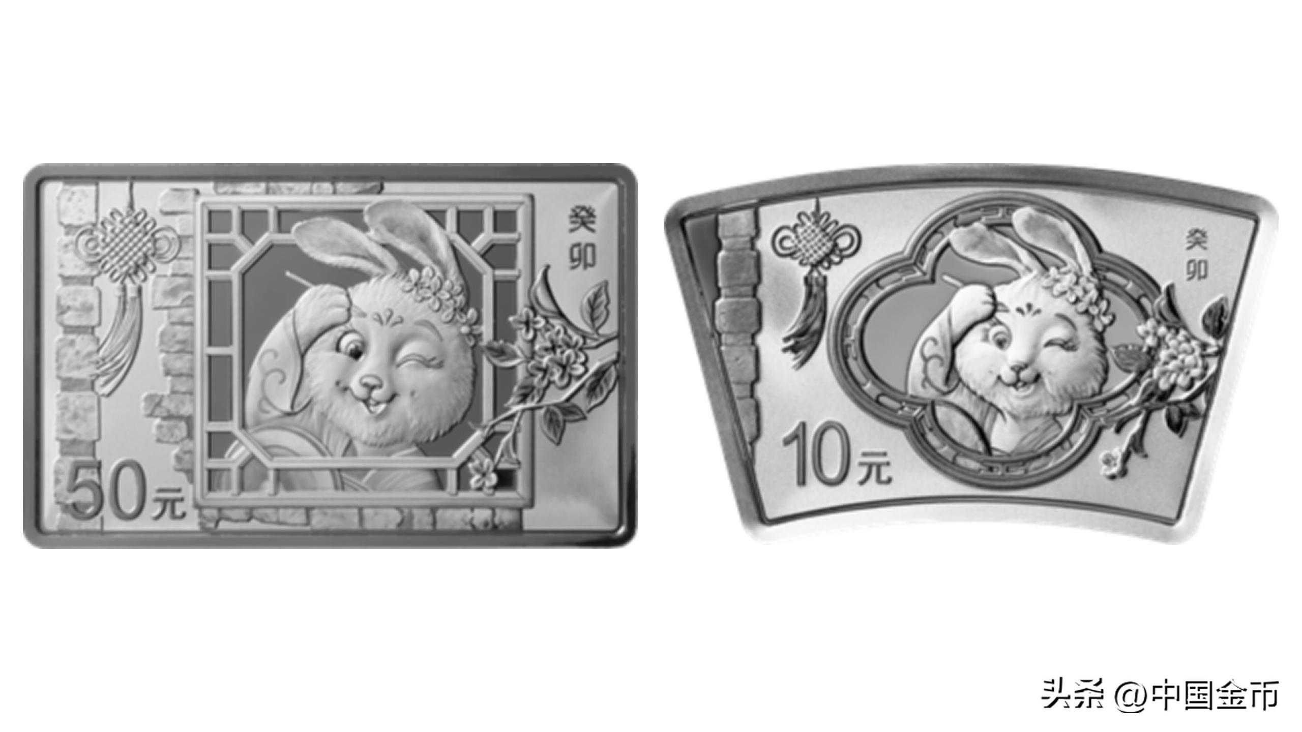 150克长方形银质纪念币及30克扇形银质纪念币背面图案均为卡通兔造型,衬以桂花、中国结、窗等组合设计。主体图案呈现的是一只正在窗棂前梳妆打扮的兔子,她闭着一只眼,像模像样地化着妆,十分俏皮可爱。这种将生肖拟人化的设计不仅创意十足,而且瞬间拉近了它与观者的心理距离。