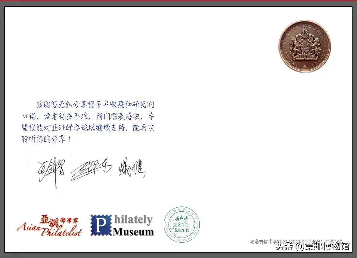 两年前的今天(2020年3月2日,北京时间),英国皇家邮学会的两位会士王剑智先生(DannyWongFRPSL)和张华东先生(JackZhangFRPSL)在参加完李安娜会士(AnnyLiFRPSL)组织的“亚洲珍邮”展(地点:皇家邮学会伦敦总部)后的第二天(3月1日,伦敦时间,北京时间为3月2日)就在“亚洲邮学家”读者群开讲,王剑智会士首先讲述的题目是《新疆的革命与内战》,随后,张华东会士讲述了《黑便士》,从此开启了《亚洲邮学论坛》邮学讲座的历程。