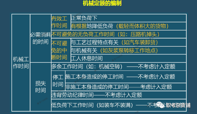 人工消耗定额必须消耗时间就用自己一个白天的工作去理解记忆。机械定额必须消耗的时间要记住一个大卡车载着一车的泡沫盒子是有效工作时间,这是有根据地降低负荷。