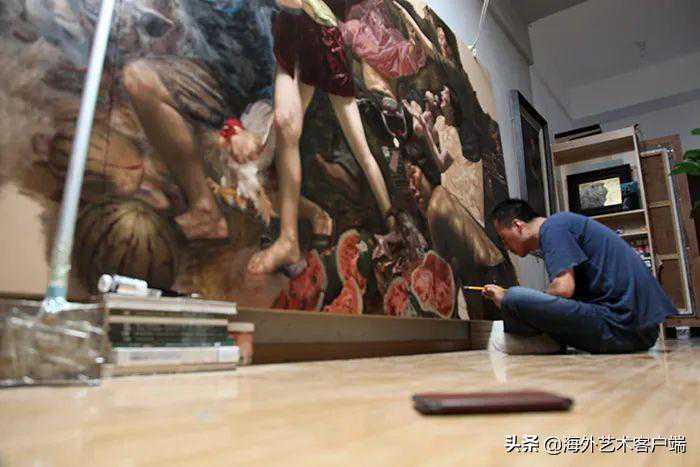 一直到2007年底,刘溢从加拿大回国,才真正开始了拜师学艺之路。完全没有受过专业训练的他当时画的画,现在看连自己都嫌弃,但当时内心却是满满的不服气。前3个月一张作品都没画出来的他,每天只睡2个小时,硬是咬着牙把这个“鸿沟”给填满了。得益于刘溢独特的教学理念与方法,不到三年,马精虎就几乎熟练掌握了这一套古典油画技法。