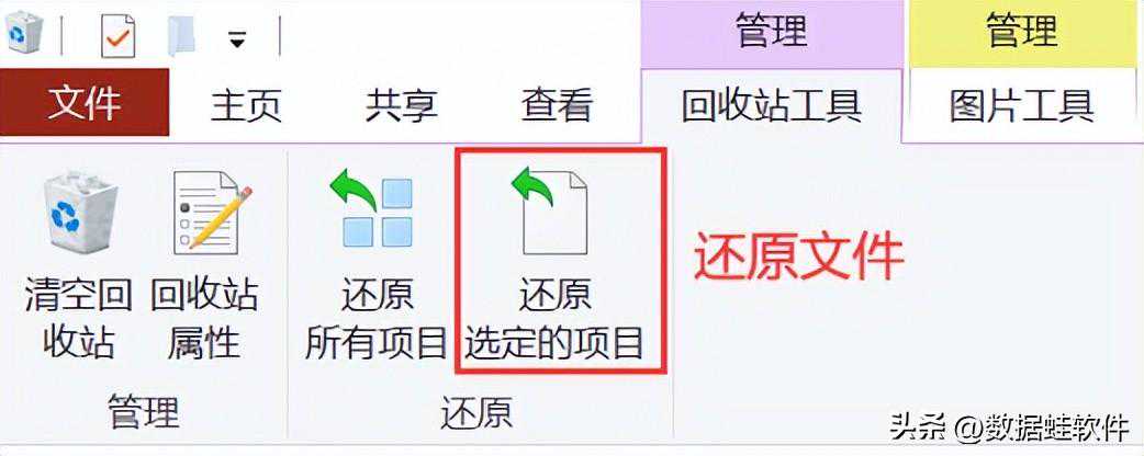 步骤2:在回收站中对需要恢复的文件进行定位和查找,找到需要恢复的文件后,单击右键选择【还原选定的文件】。