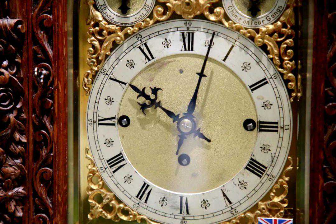 这是一台通过铃声奏乐来报时的大型音乐座钟,它的外壳稳重大气,继承了英国钟一贯的风格。不同于一般的8铃高档座钟,这台钟有20铃,存世极少,通过拨动上方的指针可以切换7种不同的乐声。