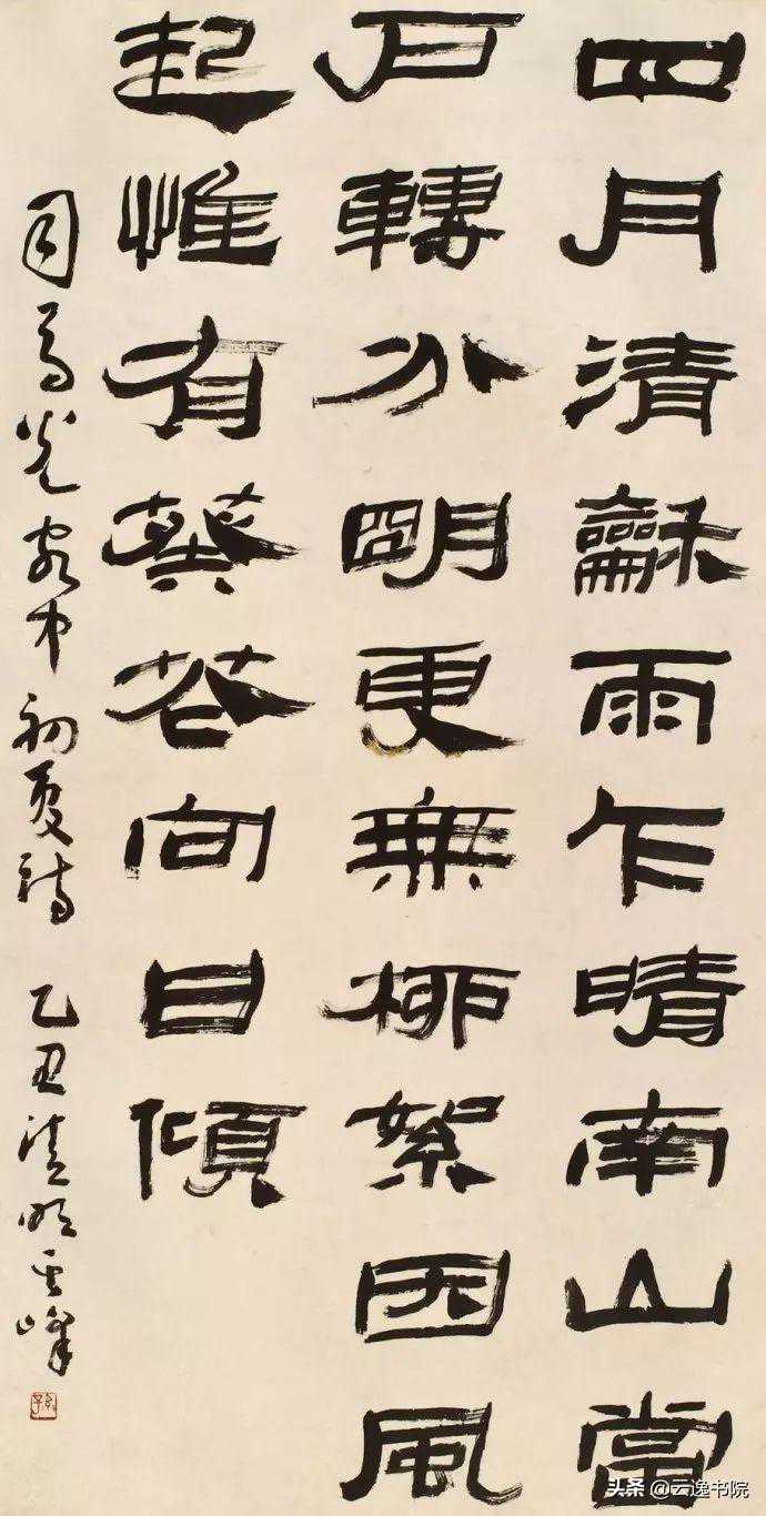 看到孙其峰的隶书作品,你会发现,字里行间透出的不仅仅是古朴,而且还有时代之韵,汉人的高古率直、清人高士的淡雅恬静及他本人的文化积淀、社会阅历都一一跃然纸上,令人百看不厌。
